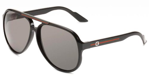Gucci Men's 1627/S Aviator Sunglasses,Shiny Black Frame/Grey Lens,One Size Overviews